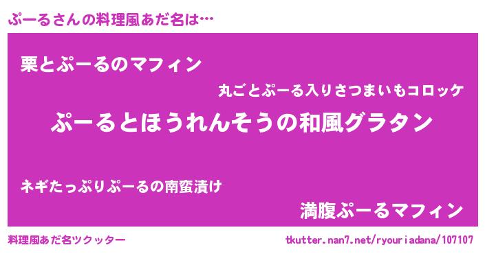 | 女子向けラノベタイトル風あだ名 | 『ぷーるの玉の輿計画!』 |