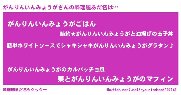 | 意味不明あだ名 | 『とにかく怪しいがんりんいんみょうが』 |