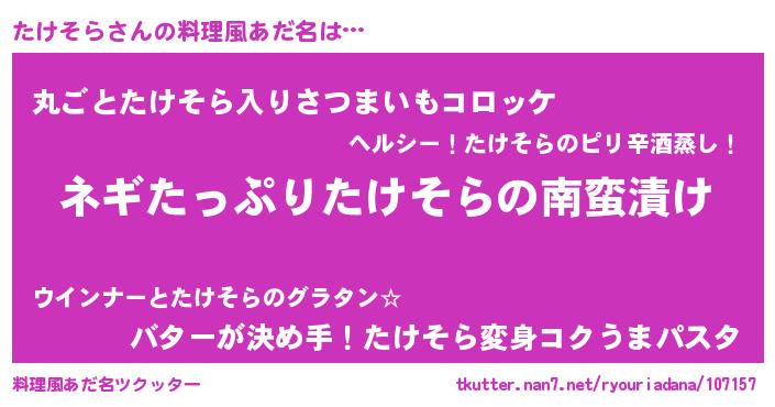 | ヘコむあだ名 | 『たけにゅー』『なまこ酢』 |