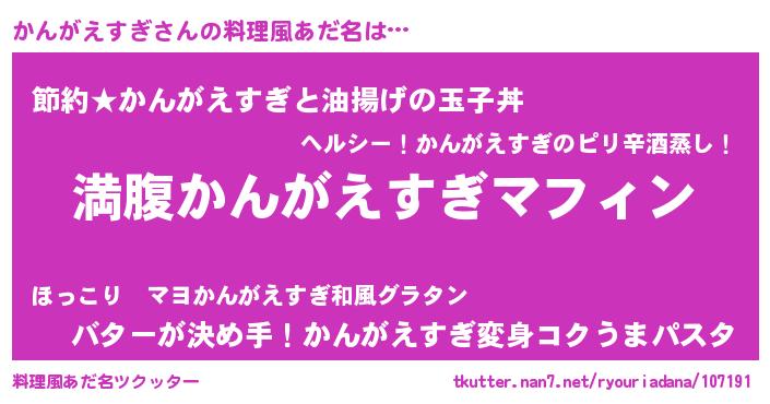 | 胡散臭い通販商品みたいなあだ名 | 『絶対に幸福をもたらす健康食品…その名も「かんがえすぎ」』 |