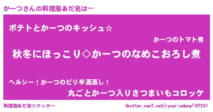 | 胡散臭い通販商品みたいなあだ名 | 『全米が絶賛したサプリメント…その名も「かーつ」』 |