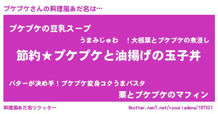 | 意味不明あだ名 | 『ペロリンプケプケ』『永久保存プケプケ』 |
