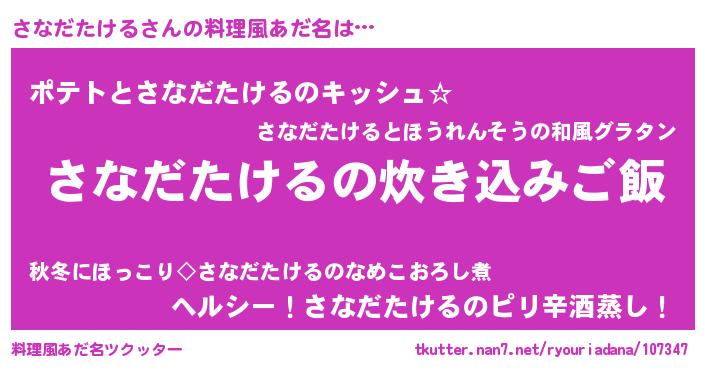 | ヒーロー風カッコイイあだ名 | 『天弓騎士サナ』『最強戦士サナダタケル』 |
