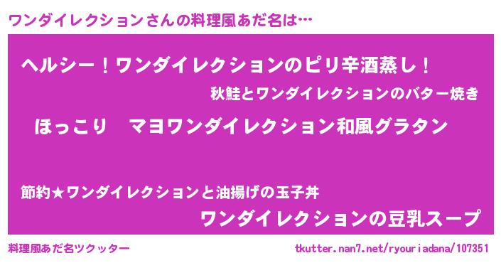| 胡散臭い通販商品みたいなあだ名 | 『あなたにだけ特別に提供する100年もののヴィンテージワイン…その名も「ワンダイレクション」』 |