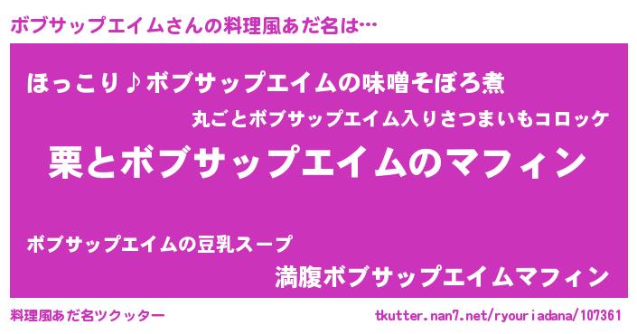 | ヘコむあだ名 | 『ボブもー』『ボブサップエイム(苦笑)』 |