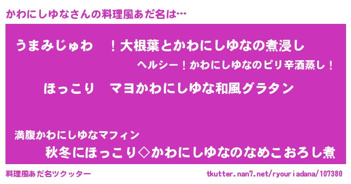 | ヘコむあだ名 | 『酢こんぶ』『かわにしゆな(笑)』 |