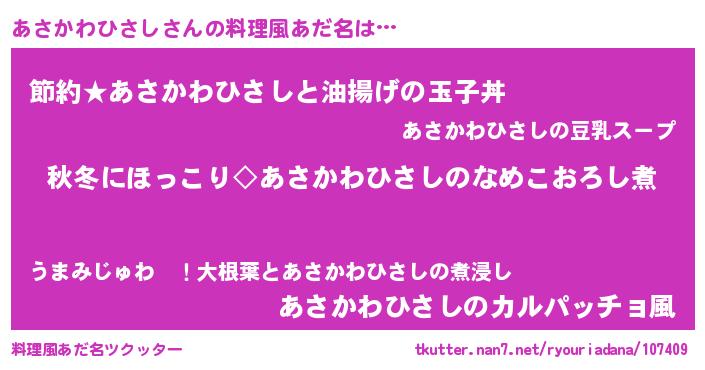 | 男性向けラノベタイトル風あだ名 | 『あさかわひさしに滅ぼされるだけの簡単なお仕事です』 |