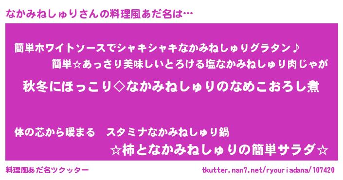 | 男性向けラノベタイトル風あだ名 | 『なかみねしゅりに滅ぼされるだけの簡単なお仕事です』 |