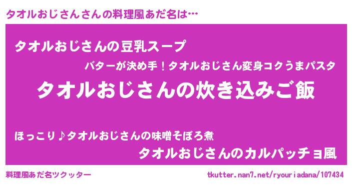 | 意味不明あだ名 | 『とにかく怪しいタオルおじさん』 |