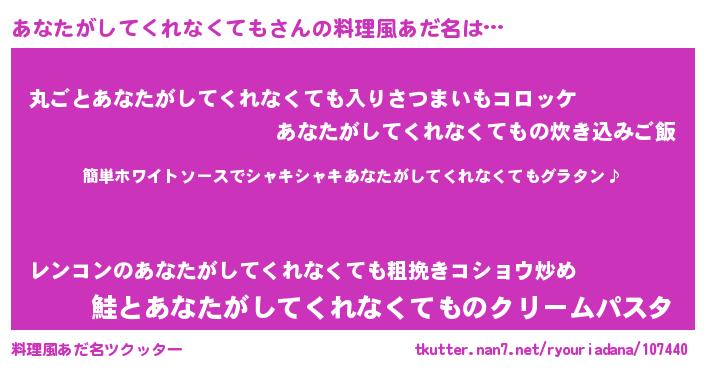 | 男性向けラノベタイトル風あだ名 | 『あなたがしてくれなくてもの嫁は女の子じゃないと思った?』 |