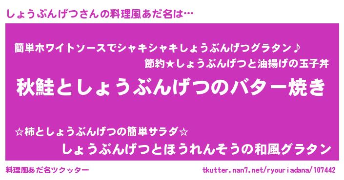 | 胡散臭い通販商品みたいなあだ名 | 『来世でも幸せになれる健康食品…その名も「しょうぶんげつ」』 |