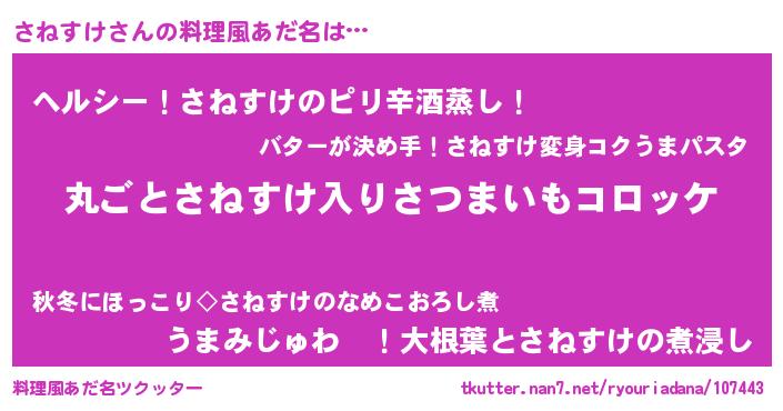| 意味不明あだ名 | 『住所不定無職さねすけ(59歳)』 |