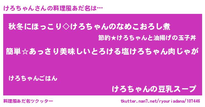 | 意味不明あだ名 | 『永久保存けろちゃん』『自称けろちゃん』 |