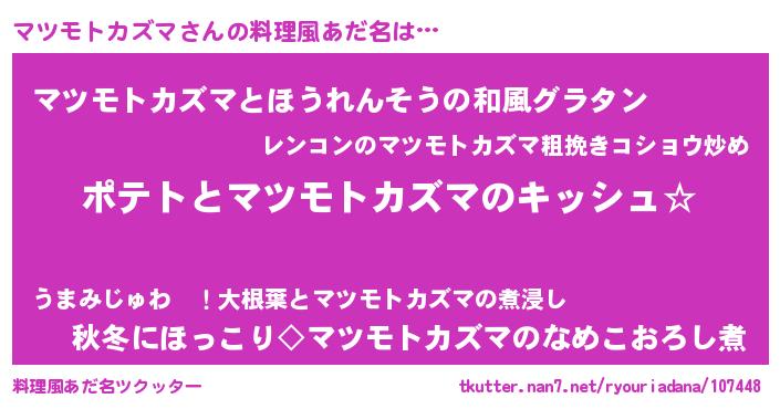 | 意味不明あだ名 | 『とにかく怪しいマツモトカズマ』 |