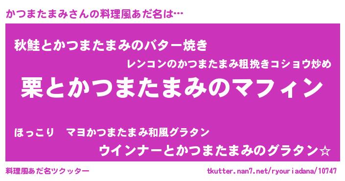 | 胡散臭い通販商品みたいなあだ名 | 『来世でも幸せになれる招き猫…その名も「かつまたまみ」』 |