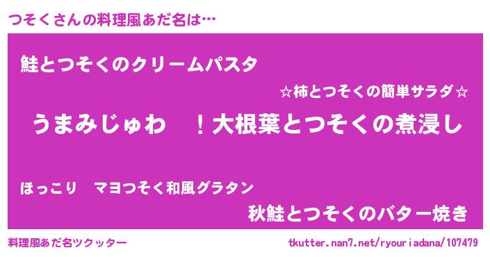 | ポケモン風あだ名 | 『ツソクダネ』『ツックウザ』 |