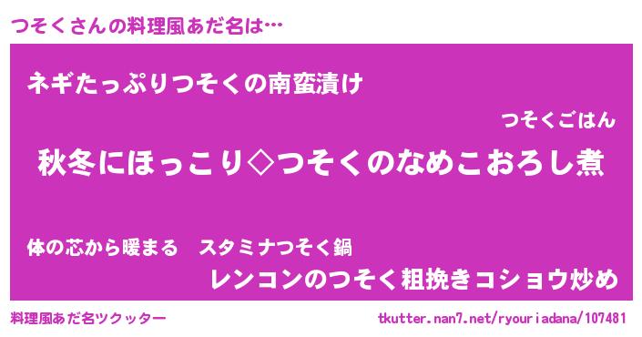 | 意味不明あだ名 | 『ペロリンつそく』『自称つそく』 |