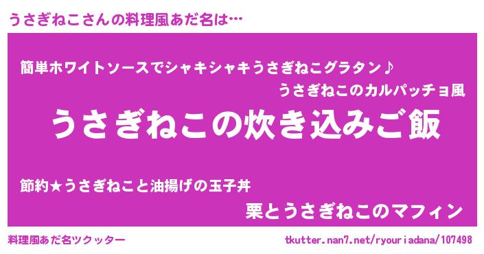 | 胡散臭い通販商品みたいなあだ名 | 『伝統あるサプリメント…その名も「うさぎねこ」』 |