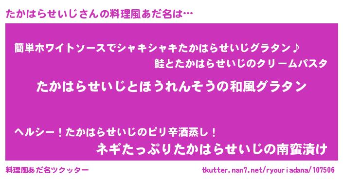 | 女子向けラノベタイトル風あだ名 | 『たかはらせいじの玉の輿計画!』 |