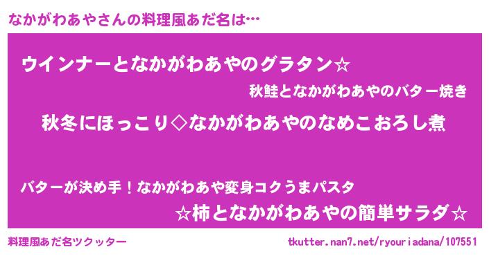 | 男性向けラノベタイトル風あだ名 | 『なかがわあやに滅ぼされるだけの簡単なお仕事です』 |