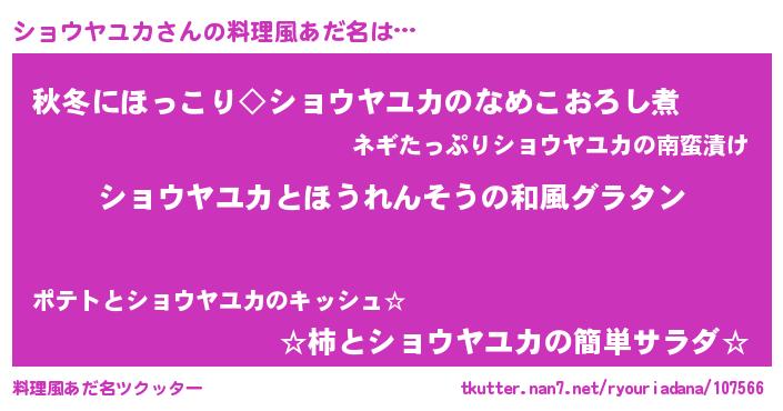| 女子向けラノベタイトル風あだ名 | 『ショウヤユカの玉の輿計画!』 |