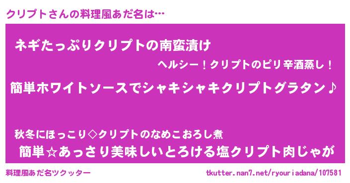 | 恥ずかしいあだ名 | 『クリリンリン』『プリティークリプト』 |