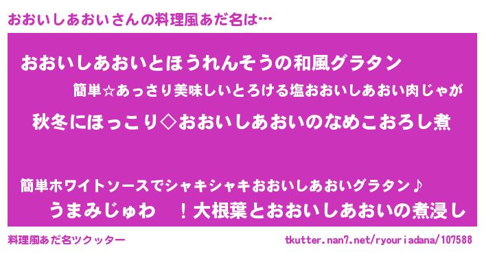 | 男性向けラノベタイトル風あだ名 | 『おおいしあおいに滅ぼされるだけの簡単なお仕事です』 |