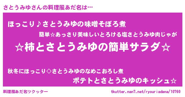 | 男性向けラノベタイトル風あだ名 | 『緋弾のサトウミユ』『さとうみゆの憂鬱』 |