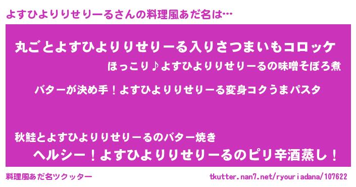 | ヘコむあだ名 | 『よすにー』『よすひよりりせりーる(爆)』 |