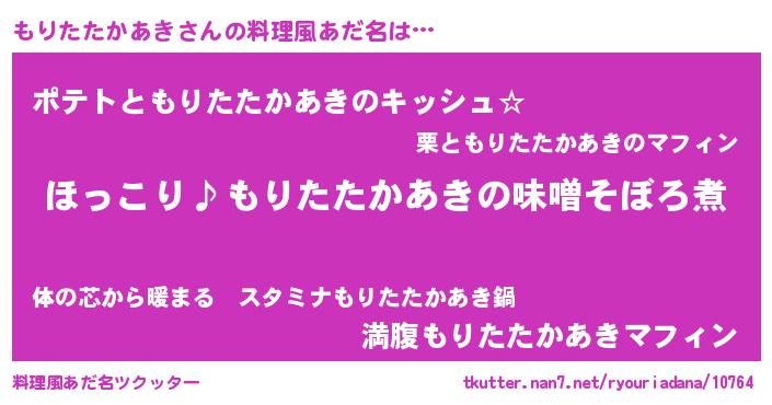 | ポケモン風あだ名 | 『モリチュウ』『ヒモリタタカアキ』 |