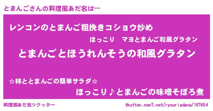 | 男性向けラノベタイトル風あだ名 | 『とまんご~年齢イコール彼女いない歴の魔法使い~』 |