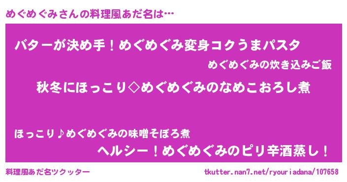 | ピコ太郎風あだ名 | 『メメ太郎』『メコ八郎』『メグ三郎』 |