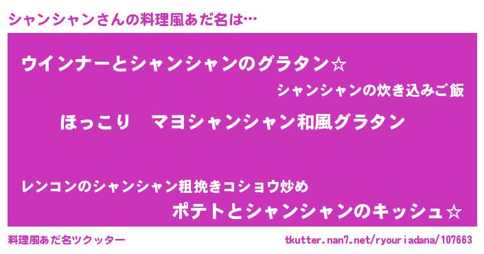 | 意味不明あだ名 | 『住所不定無職シャンシャン(43歳)』 |