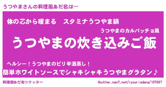 | ヘコむあだ名 | 『なまこ酢』『うつお』『うつもー』 |