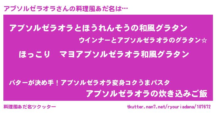 | 意味不明あだ名 | 『住所不定無職アブソルゼラオラ(7歳)』 |