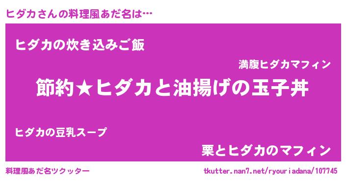 | 女子向けラノベタイトル風あだ名 | 『ヒダカ姫と円卓の騎士』 |