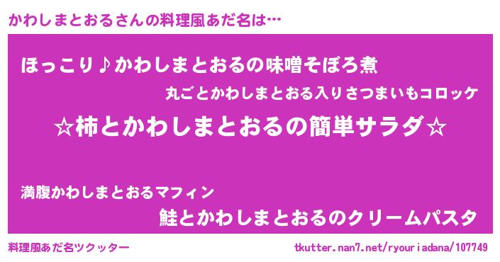| ヘコむあだ名 | 『かわっふぃ~』『かわしまとおる(爆)』 |