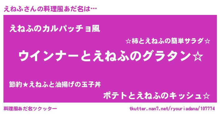 | 男性向けラノベタイトル風あだ名 | 『やはりえねふの青春ラブコメはまちがっている 』 |
