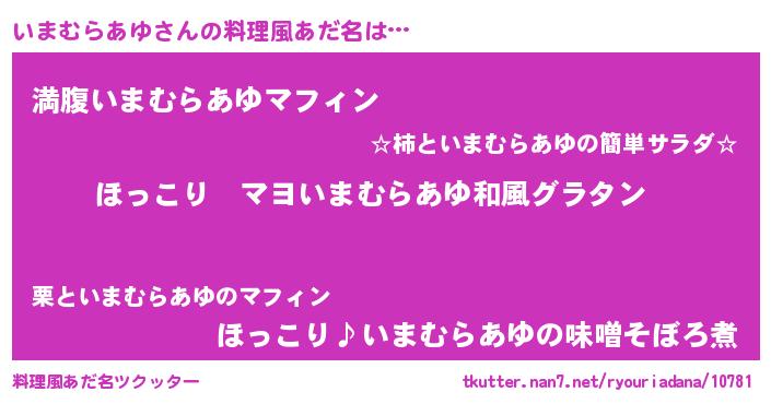 | ヘコむあだ名 | 『いまむらあゆ(震え声)』『いまもー』 |