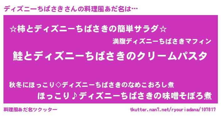 | 女子向けラノベタイトル風あだ名 | 『死神ディズニーちばさきの再婚』 |