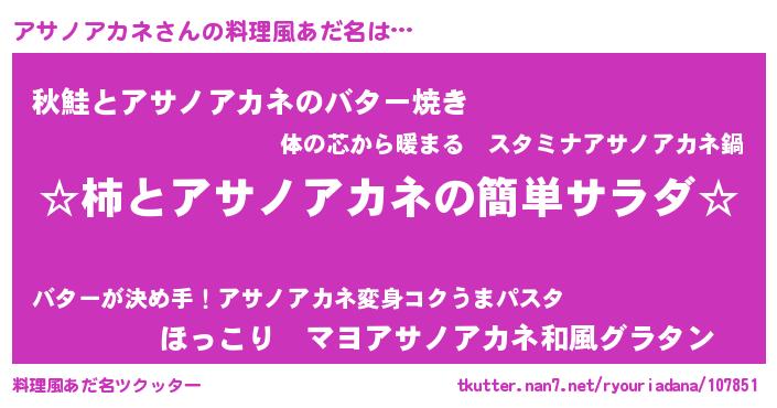 | 意味不明あだ名 | 『永久保存アサノアカネ』 |