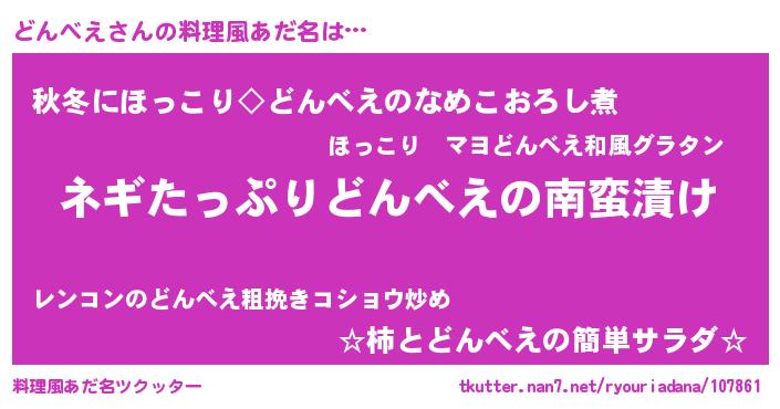 | 意味不明あだ名 | 『ペロリンどんべえ』『自称どんべえ』 |
