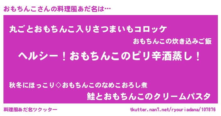 | 意味不明あだ名 | 『自称おもちんこ』『永久保存おもちんこ』 |