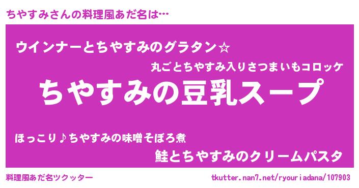 | 胡散臭い通販商品みたいなあだ名 | 『信頼と実績のネックレス…その名も「ちやすみ」』 |