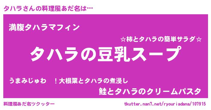 | 胡散臭い通販商品みたいなあだ名 | 『信頼と実績のサプリメント…その名も「タハラ」』 |
