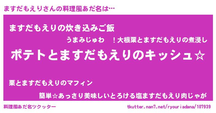 | 男性向けラノベタイトル風あだ名 | 『ますだもえりの嫁は女の子じゃないと思った?』 |