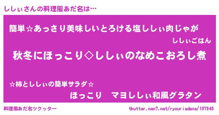 | ヘコむあだ名 | 『ししぃ(笑)』『ししを』『レバニラ』 |