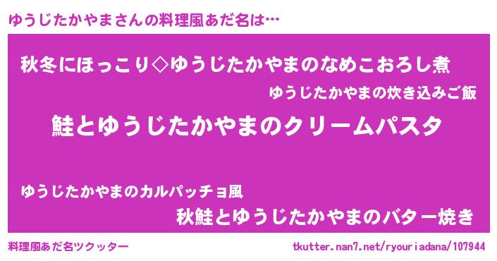 | ヘコむあだ名 | 『ゆうじたかやま(爆)』『ゆうを』 |