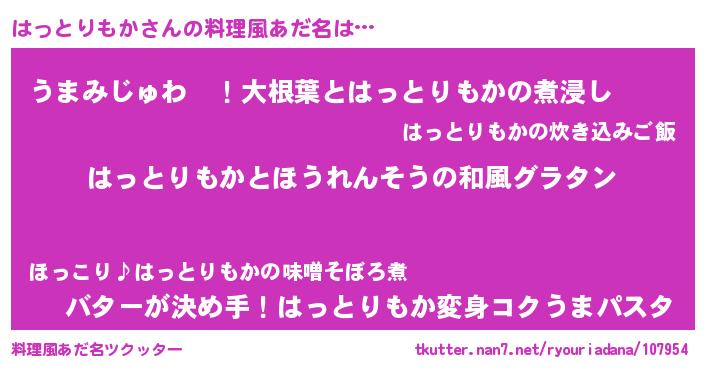 | 男性向けラノベタイトル風あだ名 | 『転生したらはっとりもかだった件』 |