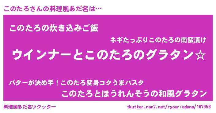 | 欧米人風あだ名 | 『このたろクリステル』 |